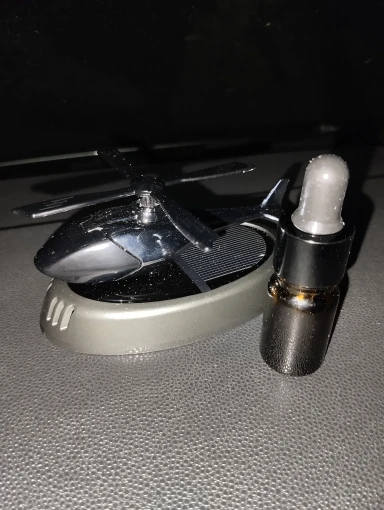 Cool helicopter! The kit includes aromatic oil and double-sided tape. The propeller spins even without sunlight. Well done, Podnebesnaya, respect!