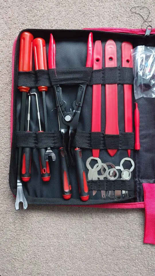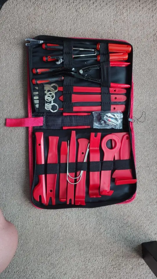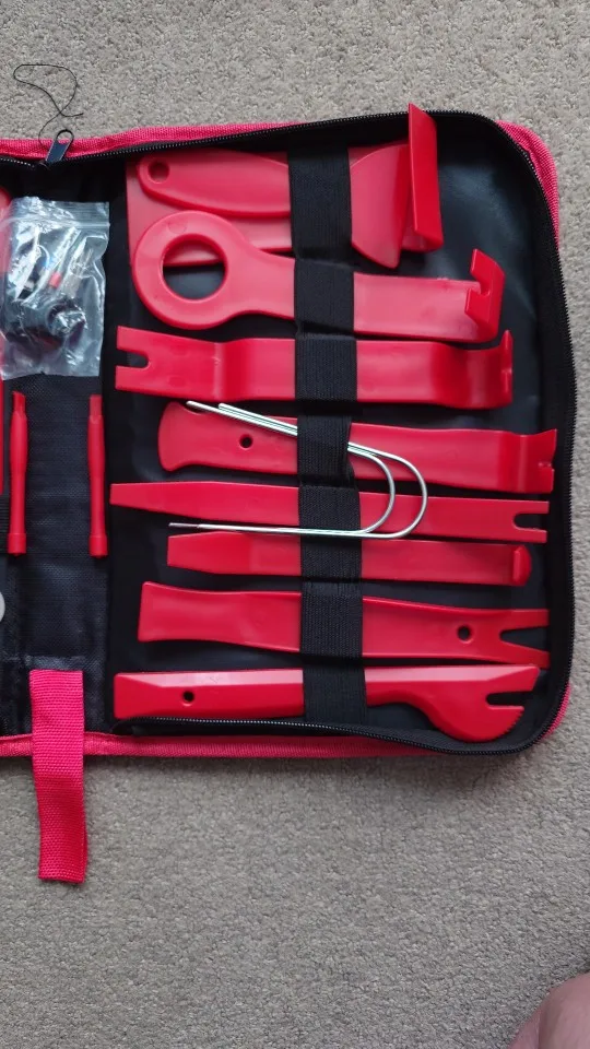 Upgrade your car toolkit with this high-quality car interior panel removal & installation tool set. Ergonomic red rubber handles, insulated grips, perfect for removing door panels, steering wheel components, and audio subassemblies. Elegant design, durable and easy to use.