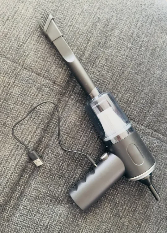 The vacuum cleaner is really cute. You can use it to clean your keyboard, etc. Very good cleaning. Or you can use the device as a blower.
