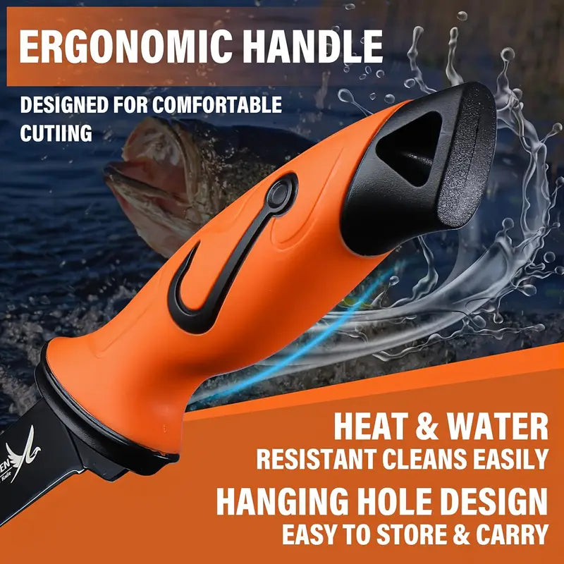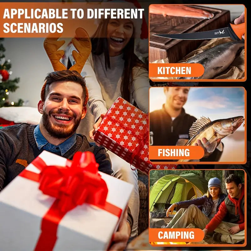 Prepare fish like a pro with this 4-piece fish fillet knife set. Includes sharp full-tang knives for filleting and deboning, each with an anti-slip handle and protective sheath. Perfect for home kitchens, outdoor fishing trips, and professional chefs. Durable, precise, and designed for easy handling, this set ensures safe and efficient fish preparation every time.