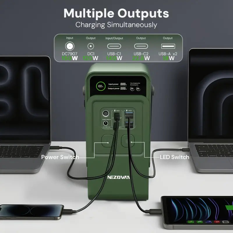 Stay powered and illuminated anywhere with this multifunctional solar LED lantern and 200W portable power station. With a massive 60,000mAh capacity and 192Wh solar generator, it’s perfect for camping, RV trips, CPAP support, outdoor adventures, and home emergency backup. Rechargeable, durable, and versatile, it combines powerful lighting with reliable energy supply for every situation.
