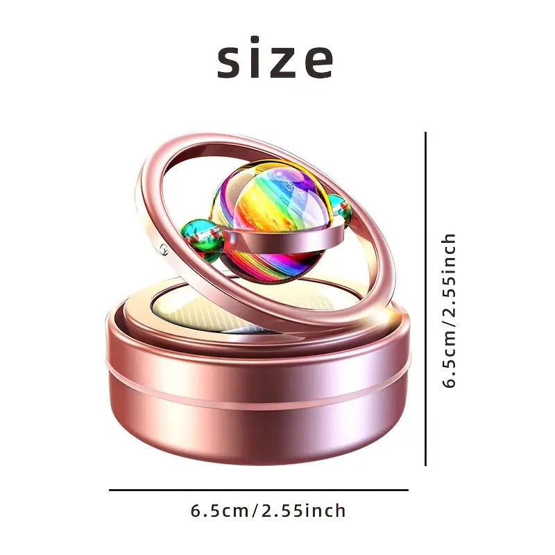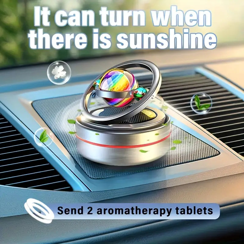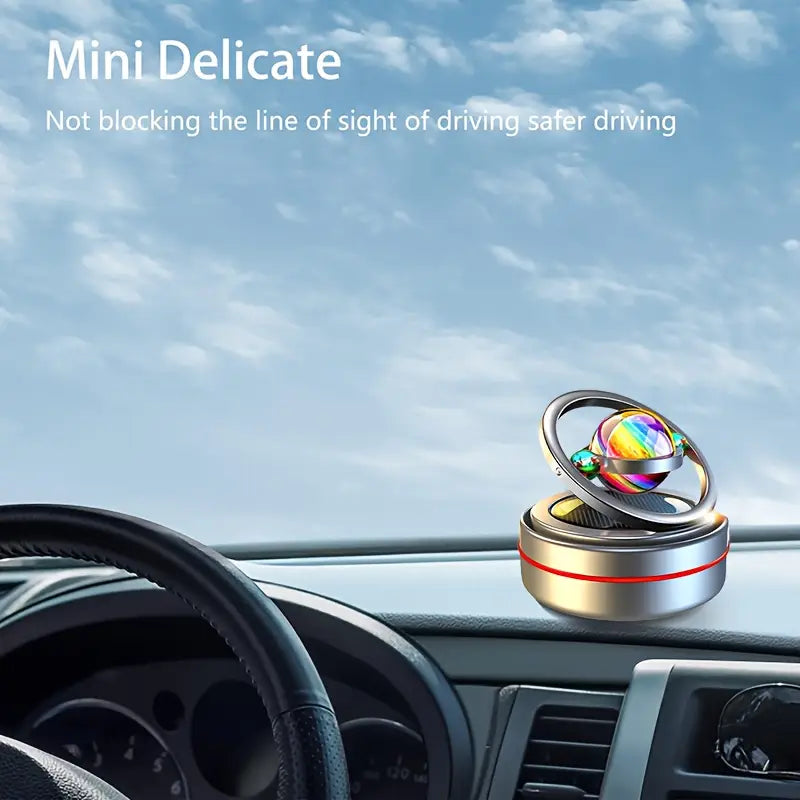 Enhance your car's interior with the solar-powered air freshener, featuring a unique second-generation planet-inspired design. Powered by sunlight, it spins gently while releasing a refined long-lasting fragrance – no batteries or cables needed. Crafted from durable aluminum alloy, the freshener has a smooth, high-end white finish that complements luxury vehicles. Its fun yet sophisticated aesthetic makes it the perfect accessory for modern drivers who value both performance and style. Ideal for dashboards, with easy installation and eco-friendly operation.