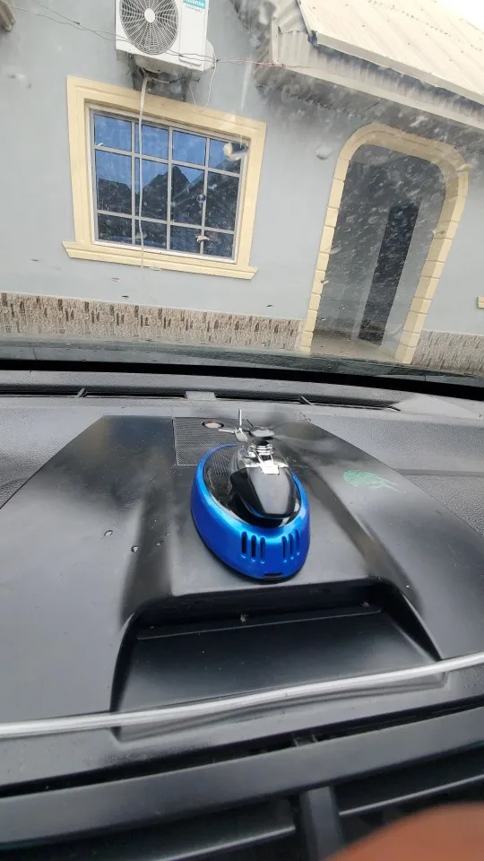 Keep your car fresh and stylish with our Blue Solar-Powered Helicopter Car Air Freshener. No batteries needed—powered entirely by solar energy, it gently spins while releasing a pleasant fragrance. This high-quality air freshener doubles as a fun dashboard ornament, making it a unique gift for car enthusiasts. Easy to use, eco-friendly, and a charming decoration for any vehicle.