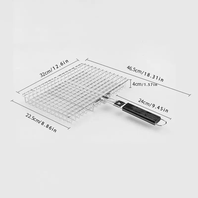 Grill your favorite meals with ease using this 1-piece stainless steel folding BBQ grill basket with lid. Featuring a detachable and foldable design, this safe food-grade metal mesh basket is perfect for grilling chicken, fish, vegetables, and more. Lightweight, portable, and durable, it’s ideal for outdoor barbecues, camping, picnics, and backyard cooking. Easy to clean, reusable, and designed for safe and even grilling every time.